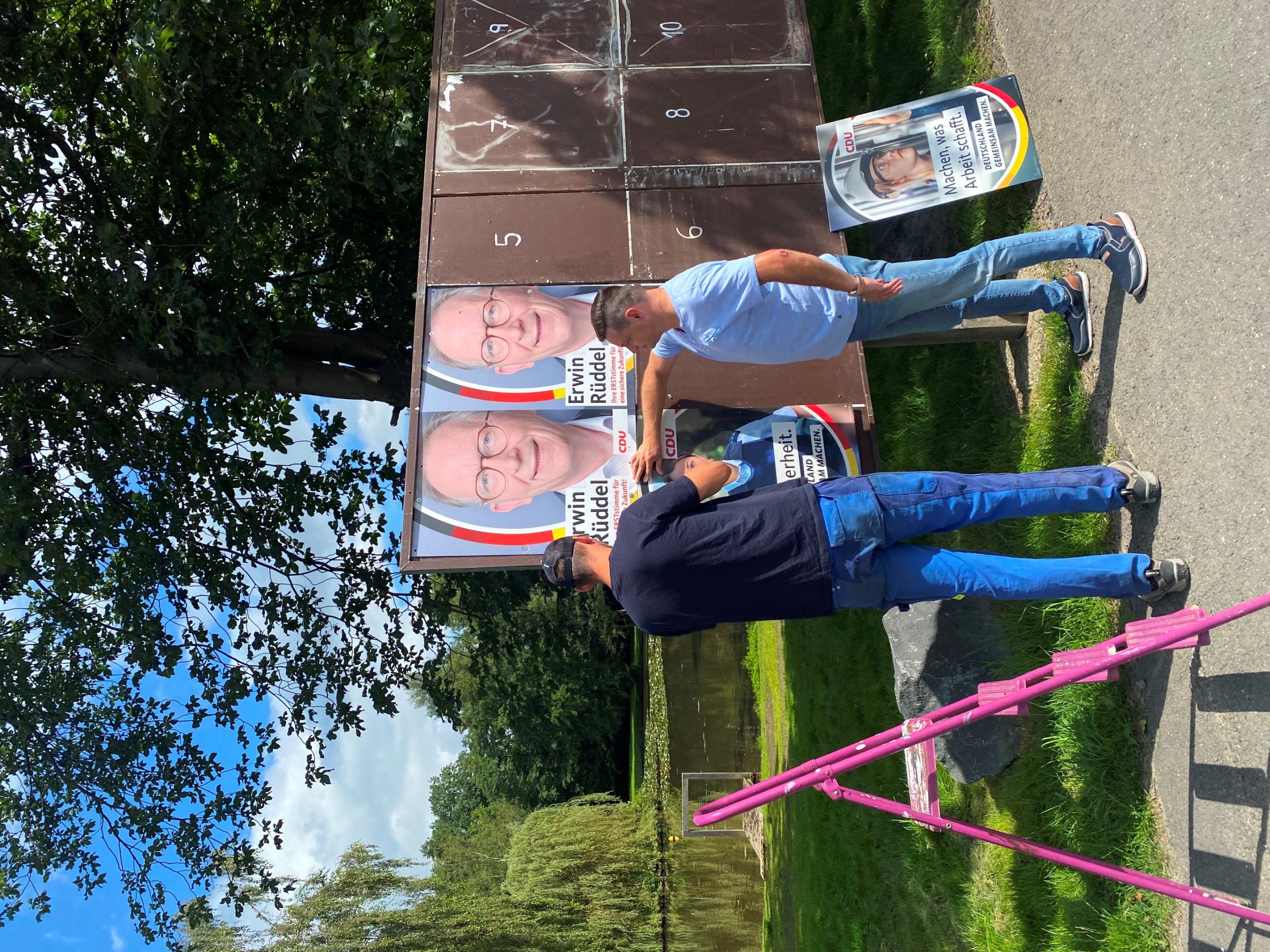 Am Sonntag, den 01.08.2021, haben Daniel Pötz, Enrico Kolling und Dirk Kolling die Wahlplakate zur Bundestagswahl auf gehangen. Es konnten 6 Stellwände mit jeweils 4 Plakaten bestückt werden. Erwin Rüddel bedankte sich bei allen tatkräftigen Unterstützer.
